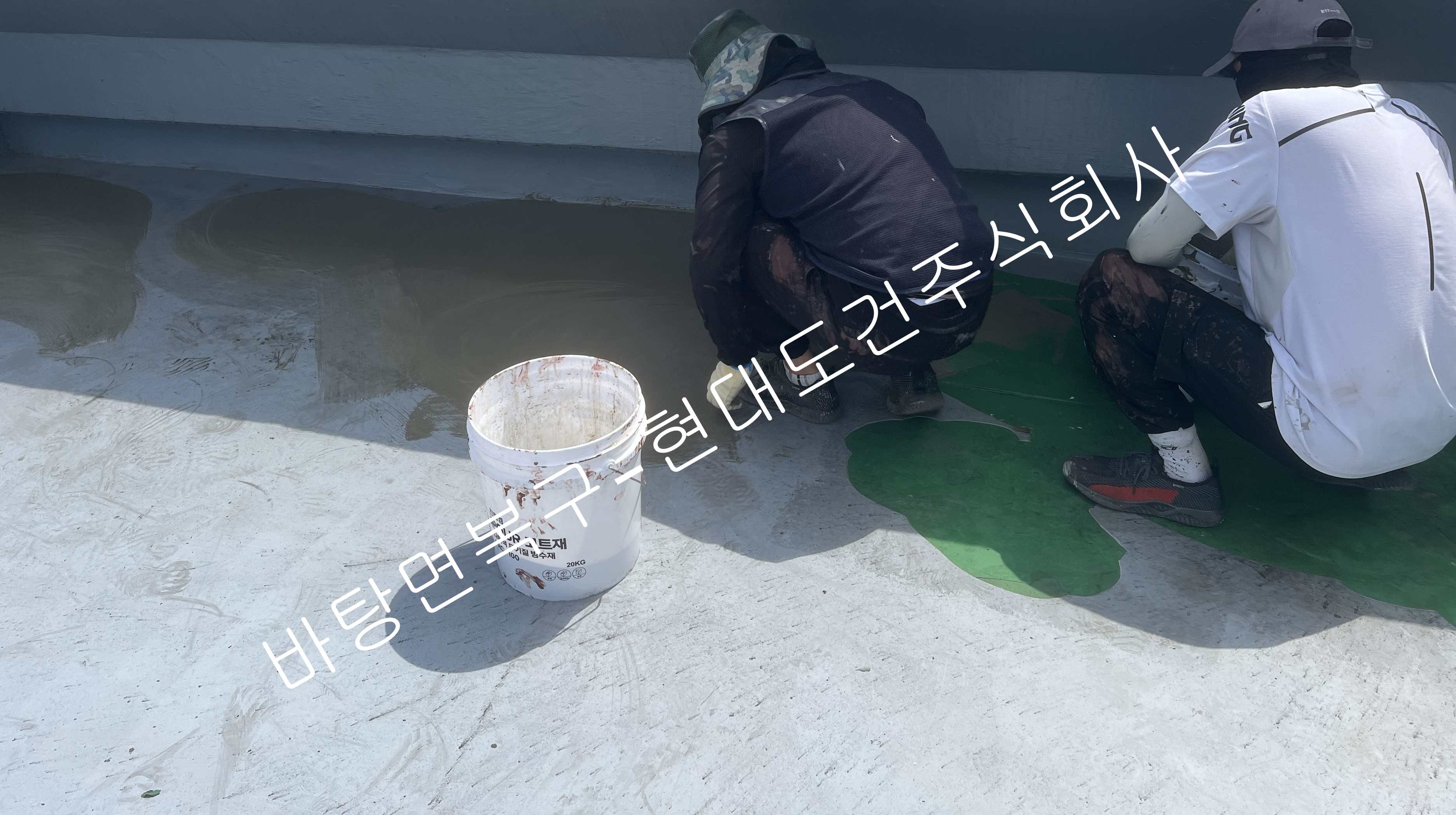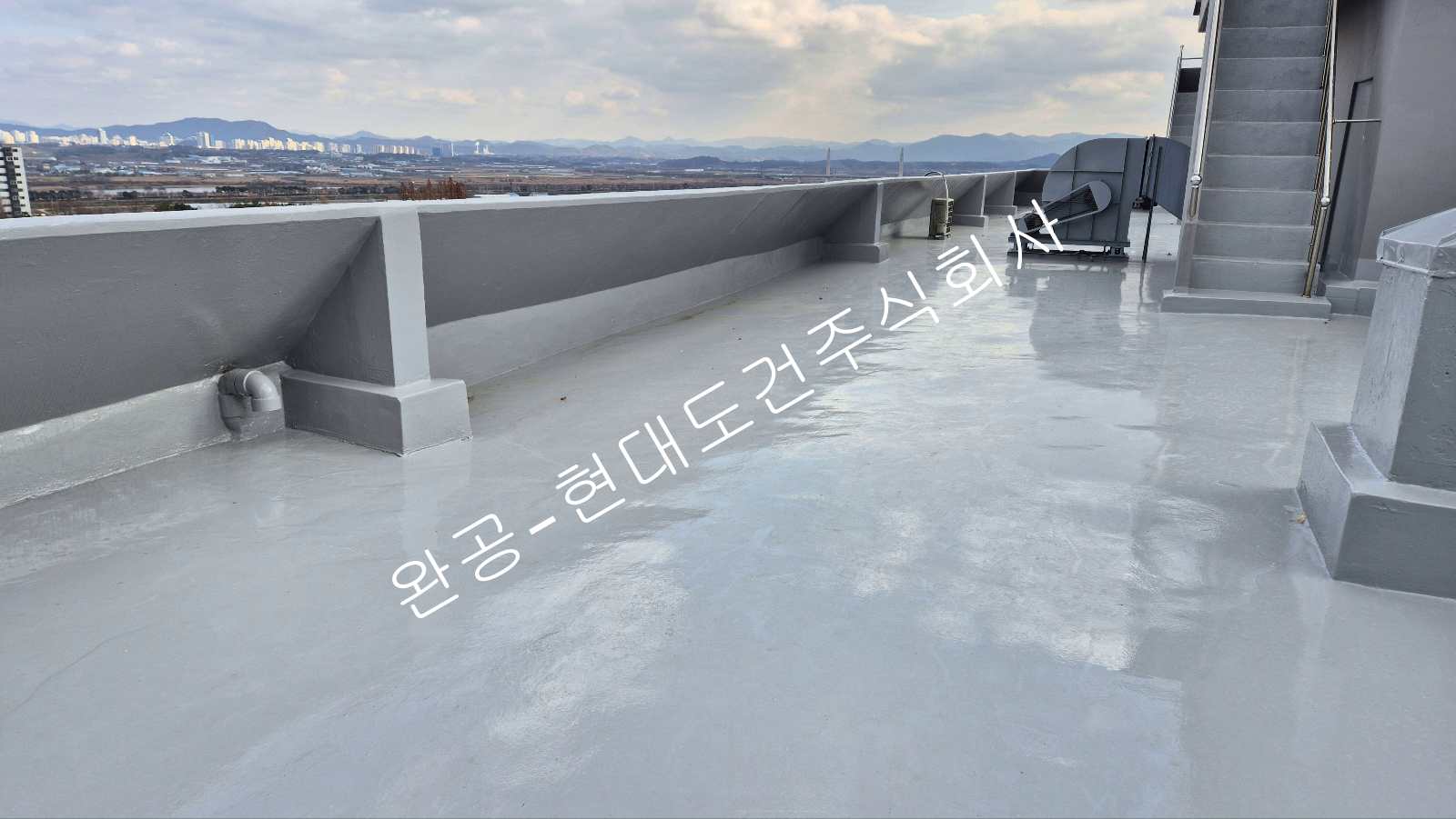 바탕정리 - 탄성복합화합물을 이용한 바탕면 복구 - 고압세척 - 우레탄 하도 - 우레탄 실란트 - 우레탄 중도 - 우레탄 상도