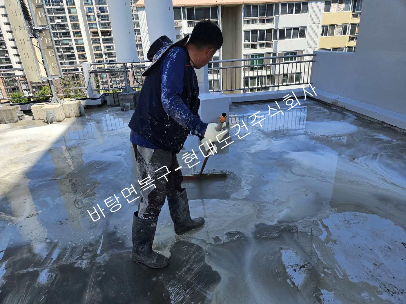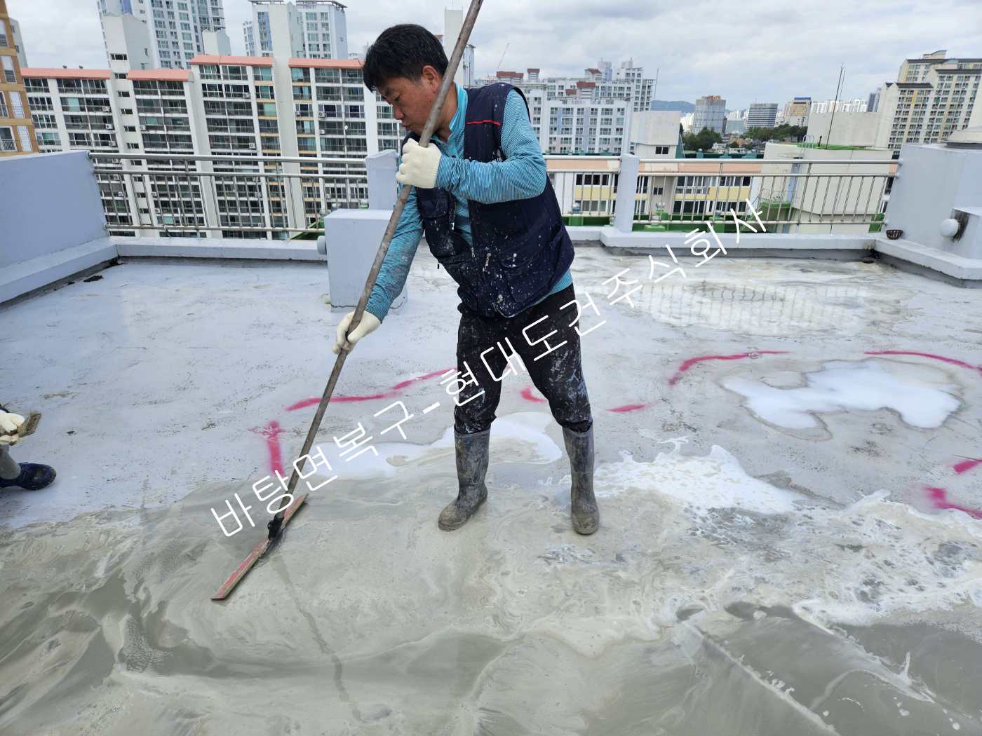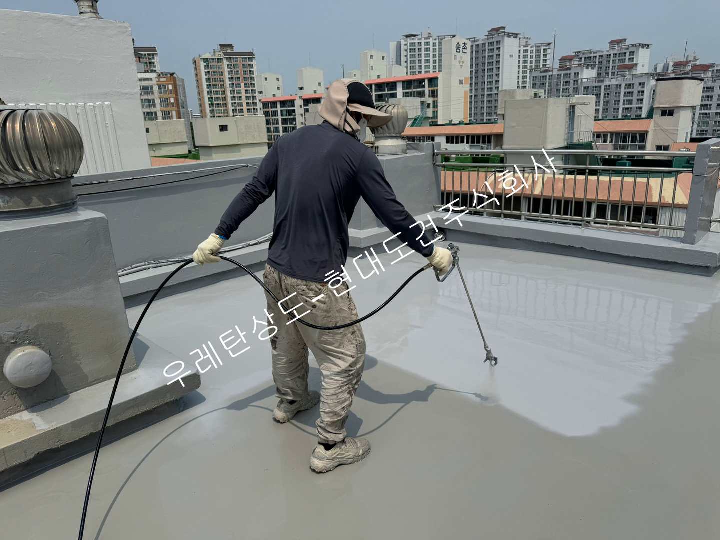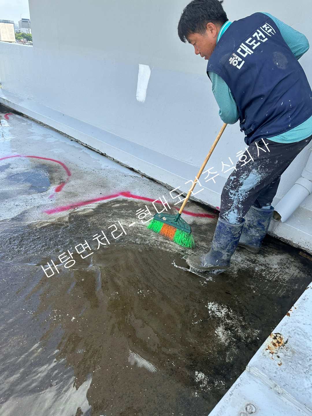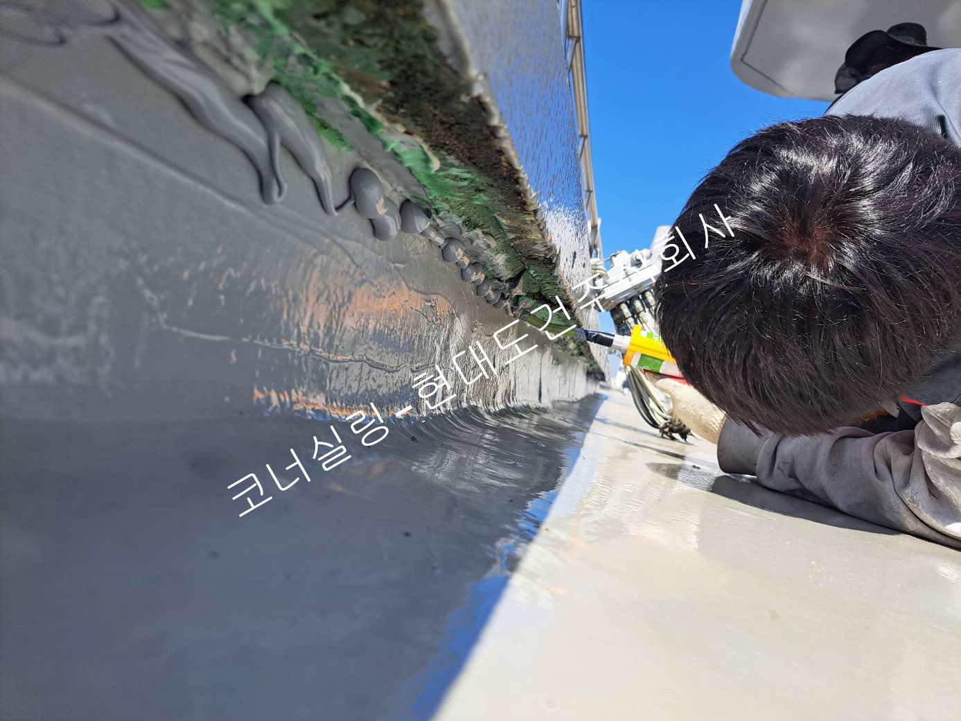 바탕정리 - 바탕면복구 - 고압세척 - 우레탄 하도 - 우레탄 실란트 - 우레탄 중도 - 우레탄 상도