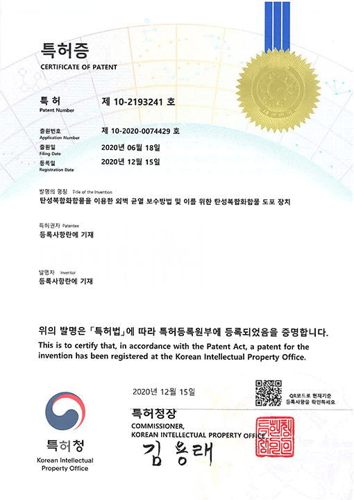 [특허증] 외벽보수 - 해븐코리아