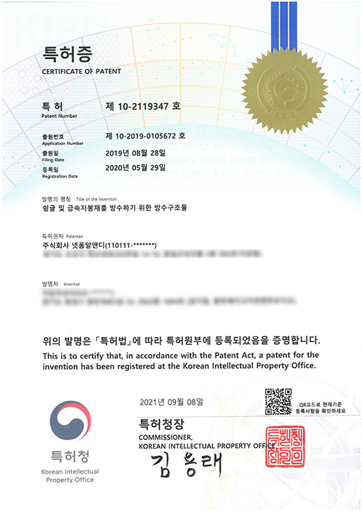 [특허증] 싱글및금속지붕재 - 넷폼알앤디