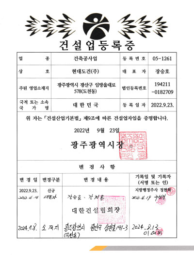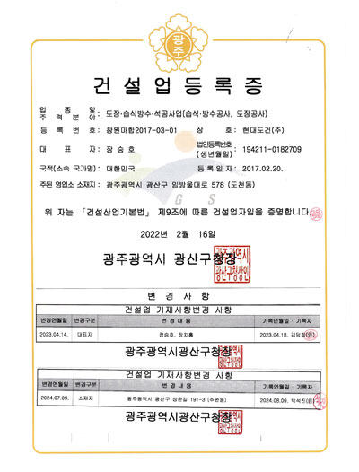 색상을 입혀 현대도건㈜의 주업인